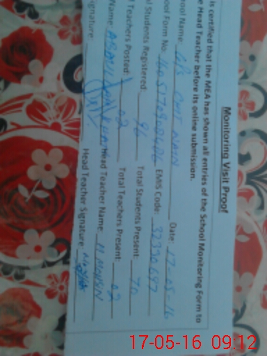 | Certified that this School was Inspected by the Undersigned MEA/DMO Today and the Information Stated Above is as Per Record. | |||||