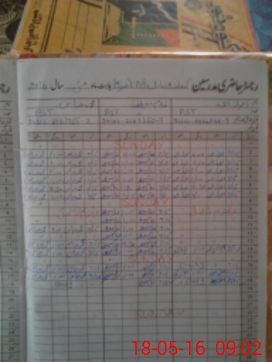 | CNIC | Full Name | Designation | R/C | Absence During Last Calender Month |