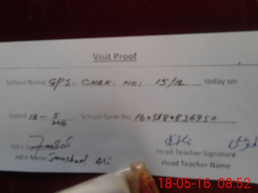 | EMIS Code: 39330255 | Name of School: GPS CHAK NO. 15/1-L | |||