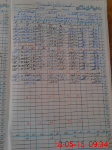 | CNIC | Full Name | Designation | R/C | Absence During Last Calender Month |