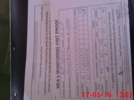 | Attendance Register | Head Teacher | MEA with School | Visit Proof |