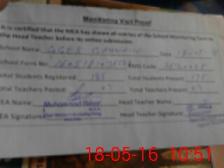 | Attendance Register | Head Teacher | MEA with School | Visit Proof |