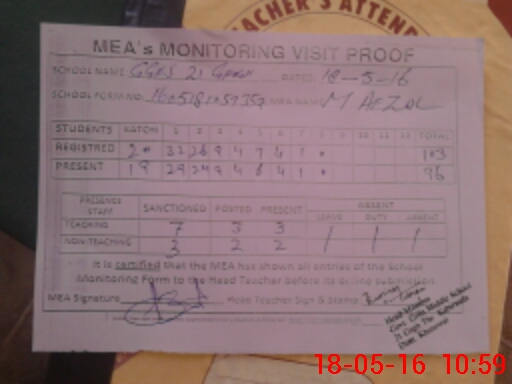 | Attendance Register | Head Teacher | MEA with School | Visit Proof |