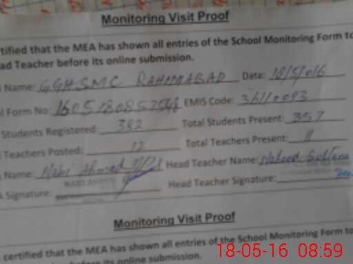| EMIS Code: 36110093 | Name of School: GGHS MC RAHIM ABAD MULTAN | |||