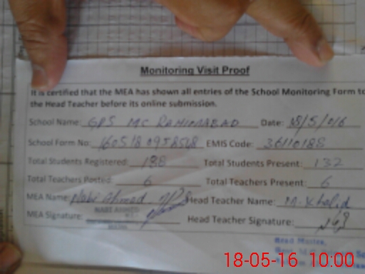 | EMIS Code: 36110188 | Name of School: GPS MC RAHIMABAD MULTAN | |||