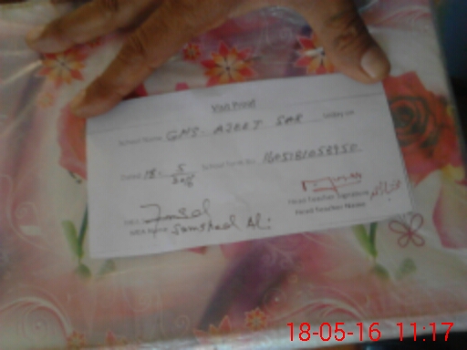 | Name: TA**** AL**** KH**** Designation: (School Headmaster's/Headmistress's) Headmaster Phone/Cell Number: 03**** |