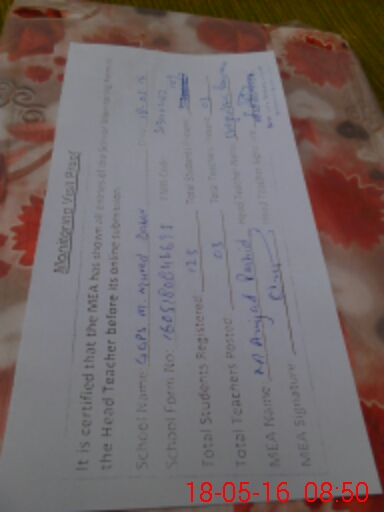 | Certified that this School was Inspected by the Undersigned MEA/DMO Today and the Information Stated Above is as Per Record. | |||||