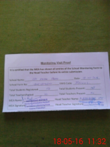| Certified that this School was Inspected by the Undersigned MEA/DMO Today and the Information Stated Above is as Per Record. | |||||