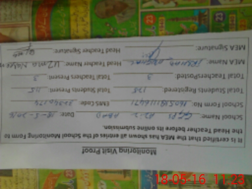 | Attendance Register | Head Teacher | MEA with School | Visit Proof |