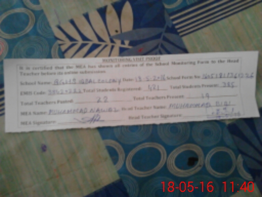 | Certified that this School was Inspected by the Undersigned MEA/DMO Today and the Information Stated Above is as Per Record. | |||||