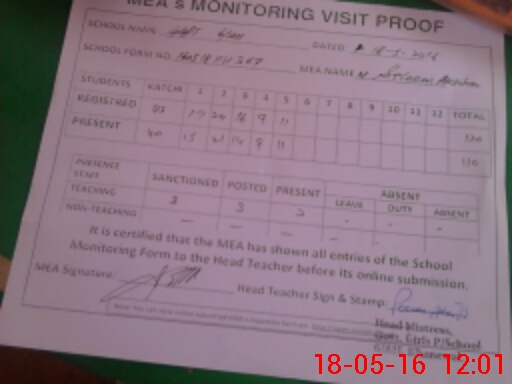 | Attendance Register | Head Teacher | MEA with School | Visit Proof |