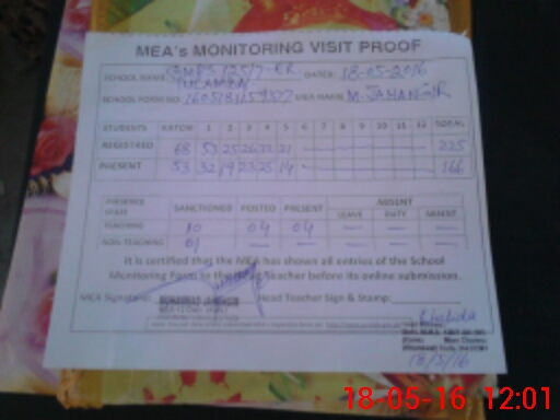 | Attendance Register | Head Teacher | MEA with School | Visit Proof |