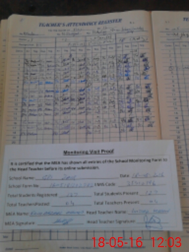 | Attendance Register | Head Teacher | MEA with School | Visit Proof |