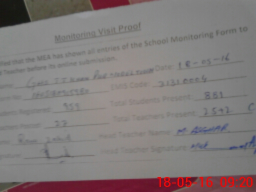 | Certified that this School was Inspected by the Undersigned MEA/DMO Today and the Information Stated Above is as Per Record. | |||||