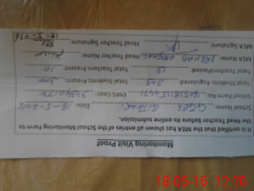| Attendance Register | Head Teacher | MEA with School | Visit Proof |