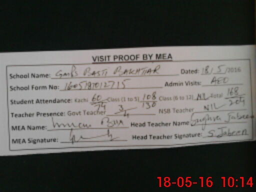 | Attendance Register | Head Teacher | MEA with School | Visit Proof |