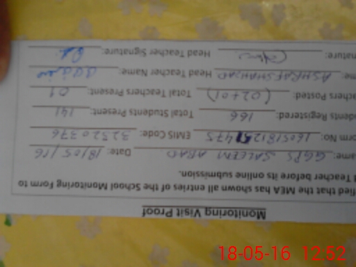| Certified that this School was Inspected by the Undersigned MEA/DMO Today and the Information Stated Above is as Per Record. | |||||