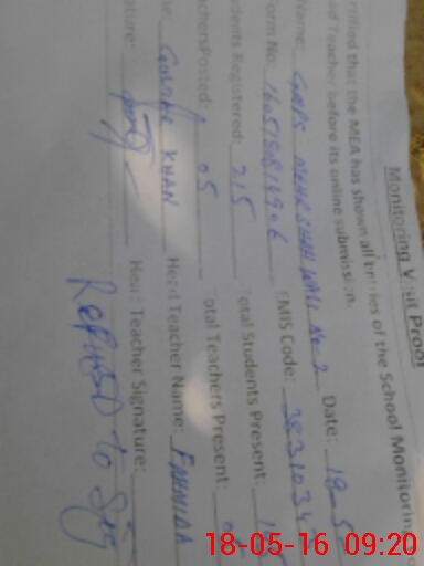 | Certified that this School was Inspected by the Undersigned MEA/DMO Today and the Information Stated Above is as Per Record. | |||||