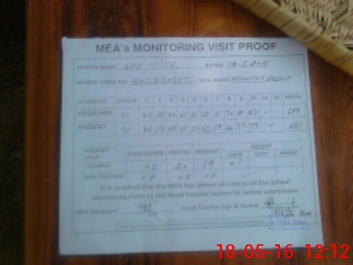 | Attendance Register | Head Teacher | MEA with School | Visit Proof |