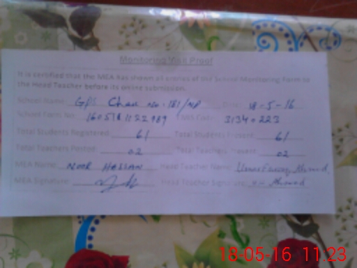 | EMIS Code: 31340223 | Name of School: GPS CHAK NO 181 NP | |||