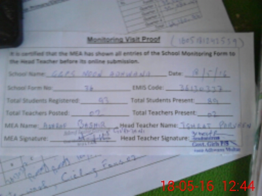 | Attendance Register | Head Teacher | MEA with School | Visit Proof |