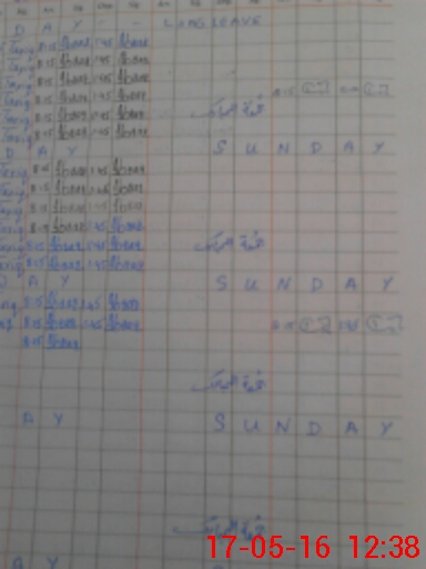 | CNIC | Full Name | Designation | R/C | Absence During Last Calender Month |