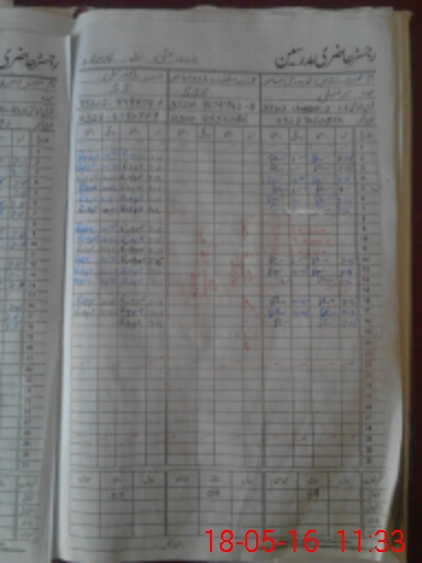 | CNIC | Full Name | Designation | R/C | Absence During Last Calender Month |