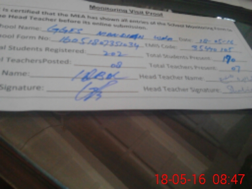 | Attendance Register | Head Teacher | MEA with School | Visit Proof |