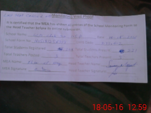 | Attendance Register | Head Teacher | MEA with School | Visit Proof |