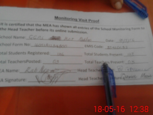 | Certified that this School was Inspected by the Undersigned MEA/DMO Today and the Information Stated Above is as Per Record. | |||||