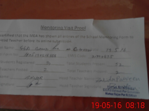 | Certified that this School was Inspected by the Undersigned MEA/DMO Today and the Information Stated Above is as Per Record. | |||||