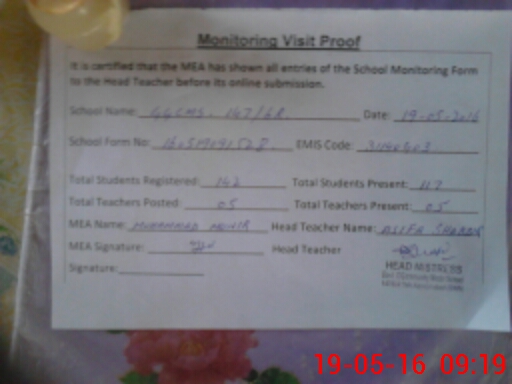 | Certified that this School was Inspected by the Undersigned MEA/DMO Today and the Information Stated Above is as Per Record. | |||||