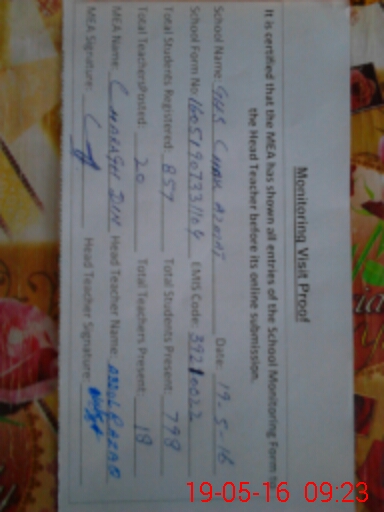 | Certified that this School was Inspected by the Undersigned MEA/DMO Today and the Information Stated Above is as Per Record. | |||||
