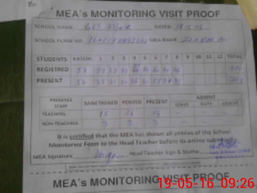 | Certified that this School was Inspected by the Undersigned MEA/DMO Today and the Information Stated Above is as Per Record. | |||||