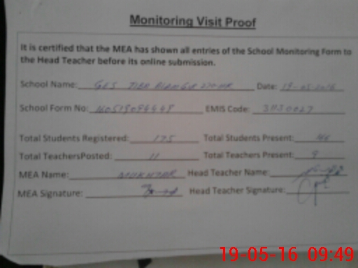 | Certified that this School was Inspected by the Undersigned MEA/DMO Today and the Information Stated Above is as Per Record. | |||||