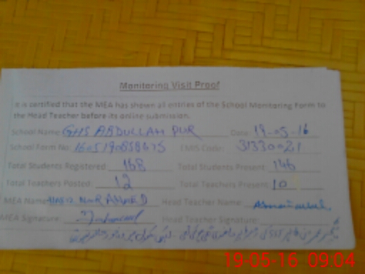 | EMIS Code: 31330021 | Name of School: GHS ABDULLAH PUR BASTI ISMAIL | |||
