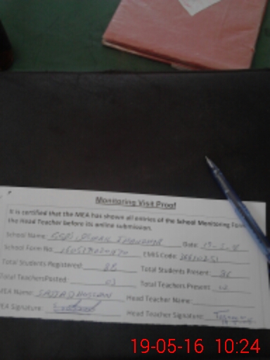| Attendance Register | Head Teacher | MEA with School | Visit Proof |