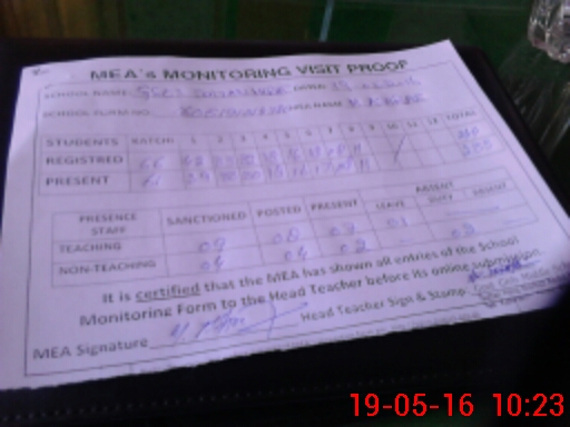 | Attendance Register | Head Teacher | MEA with School | Visit Proof |