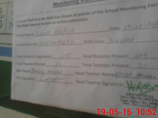 | Attendance Register | Head Teacher | MEA with School | Visit Proof |