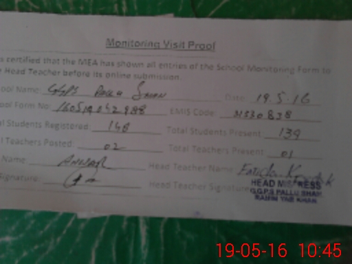 | EMIS Code: 31330838 | Name of School: GGPS PALLO SHAH | |||