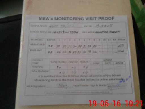 | Attendance Register | Head Teacher | MEA with School | Visit Proof |