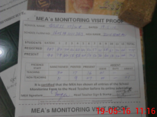 | Certified that this School was Inspected by the Undersigned MEA/DMO Today and the Information Stated Above is as Per Record. | |||||