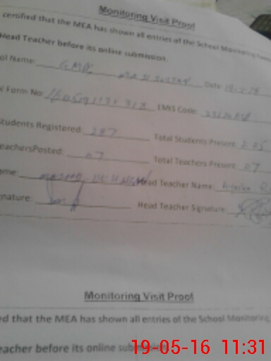 | Certified that this School was Inspected by the Undersigned MEA/DMO Today and the Information Stated Above is as Per Record. | |||||