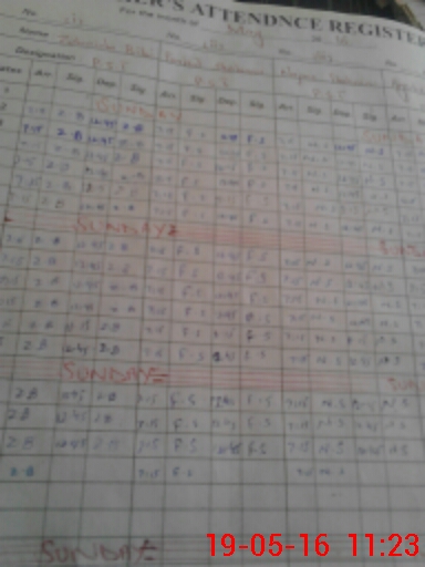 | CNIC | Full Name | Designation | R/C | Absence During Last Calender Month |