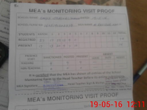| Attendance Register | Head Teacher | MEA with School | Visit Proof |