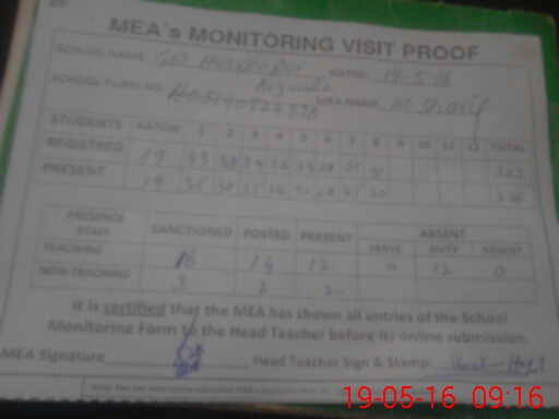 | Certified that this School was Inspected by the Undersigned MEA/DMO Today and the Information Stated Above is as Per Record. | |||||