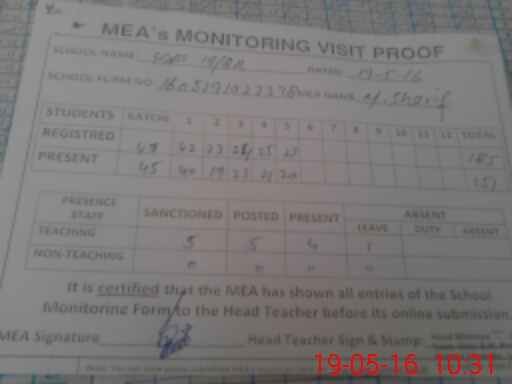 | Certified that this School was Inspected by the Undersigned MEA/DMO Today and the Information Stated Above is as Per Record. | |||||
