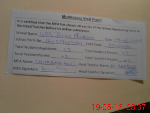 | Certified that this School was Inspected by the Undersigned MEA/DMO Today and the Information Stated Above is as Per Record. | |||||