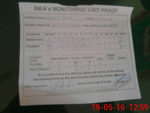 | Attendance Register | Head Teacher | MEA with School | Visit Proof |