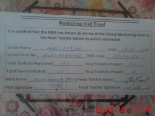 | Certified that this School was Inspected by the Undersigned MEA/DMO Today and the Information Stated Above is as Per Record. | |||||